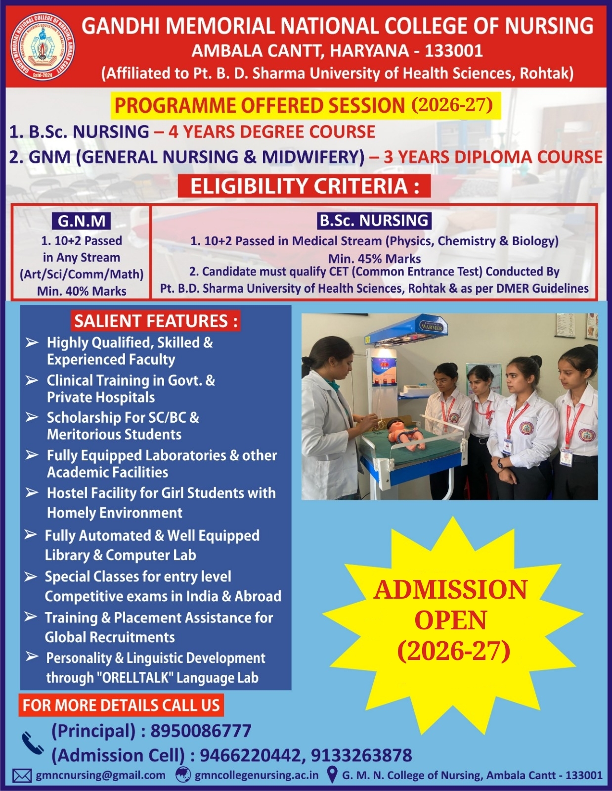 "Join us at Gandhi Memorial National College of Nursing. We provide a transformative experience that prepares you to excel in the dynamic field of nursing. Here, you'll find a supportive environment where your passion for nursing can flourish."